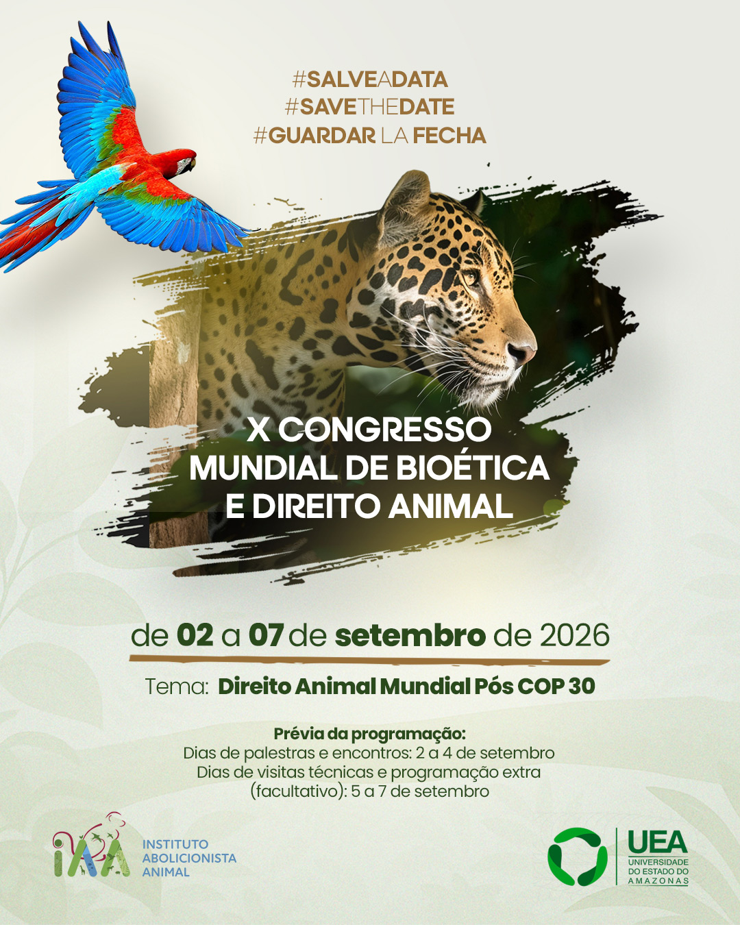 O Congresso Mundial de Bioética e Direito Animal, promovido pelo Instituto Abolicionista Animal (IAA), ocorre a cada dois anos e desempenha um papel de extrema importância na promoção da pesquisa, do debate e da defesa dos direitos dos animais em escala global. Este evento internacional reúne especialistas, pesquisadores, acadêmicos, defensores dos direitos dos animais e profissionais de diversas áreas, tornando-se um marco fundamental na promoção da ética e do direito animal e uma plataforma exclusiva para discutir questões relevantes relacionadas à vida, ao bem-estar e aos direitos dos animais em todo o mundo.
